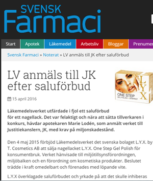 Nu får vi se vad som händer hos Justitiekanslern och om Anna Skarhed håller med om att Läkemedelsverket var vårdslösa när man förbjöd nagellacket trots att det var säkert och vi gjorde allt för att visa detta för Läkemedelsverket.